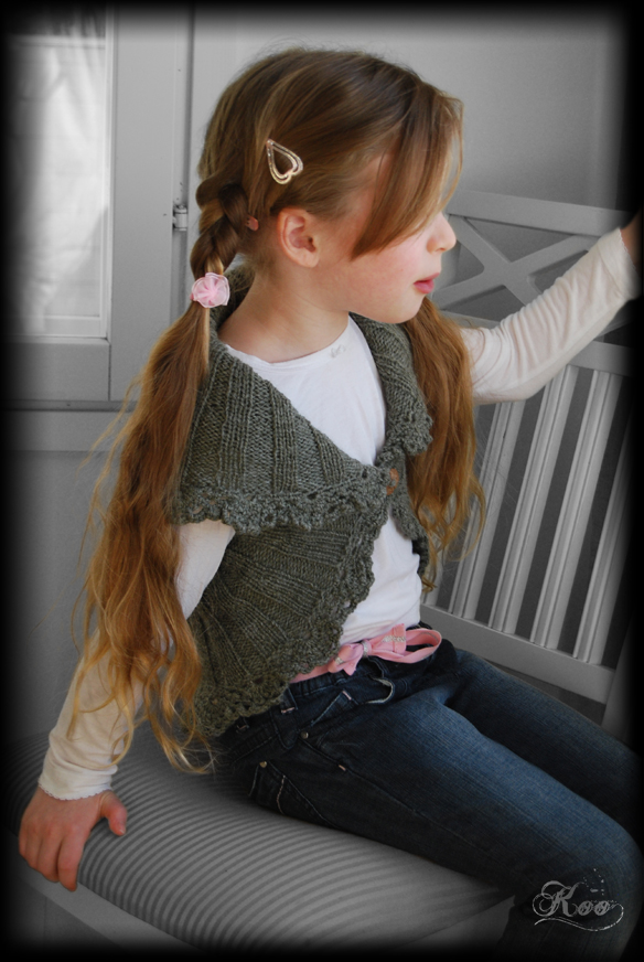 Näissä vaatteissa tyttö lähti myös tarhan valokuvaukseen. Tarhatäti tykästyi liiviin niin paljon, että halusi ohjeen tehdäkseen samanlaisen itselleen. =D